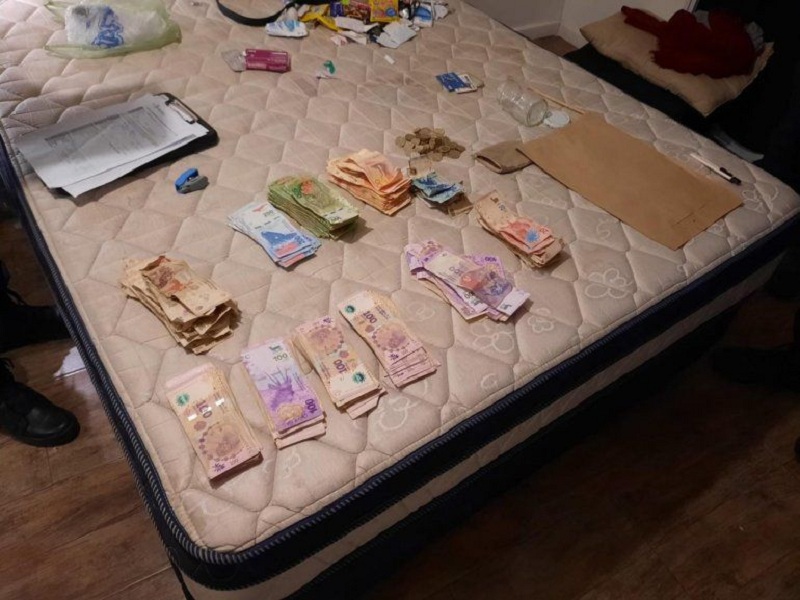 La fiscal Romina Díaz estuvo en el lugar del hecho junto a la Policía Científica y secuestraron cocaína, más de 294 mil pesos, 11 teléfonos celulares, 61 cartuchos de diferente calibre, una balanza digital, una vaina servida calibre 22, una campera color gris, una sábana, una pistola calibre 38, un rifle de aire comprimido, una pistola Bersa y municiones.