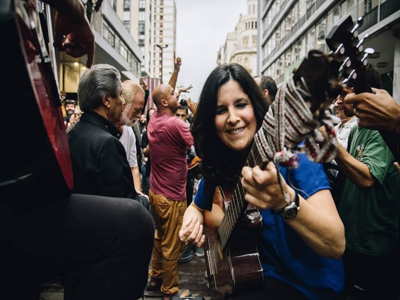 Así sucedió con «Plantamos Memoria», cuando en marzo del 2021 en medio de la pandemia, los organismos de derechos humanos convocaron a plantar un árbol en cada plaza, «y nos organizamos con los vecinos y pusimos plantines en el cantero de «La Piloto», colocamos una placa y canté la canción».
