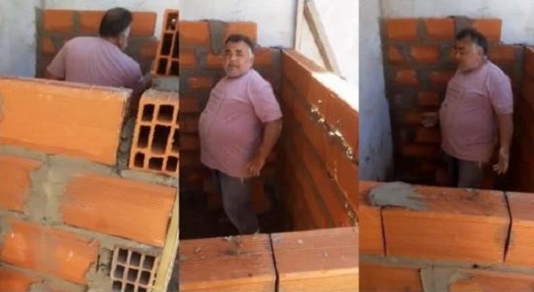 En una obra en construcción uno de los obreros que trabajaba agarra su teléfono celular para grabar una escena épica. Primero enfoca el cemento en el suelo, luego los ladrillos y termina con la imagen de su compañero, que había levantado las paredes para una habitación sin darse cuenta de un detalle fundamental en su trabajo: no tenía puerta para salir.