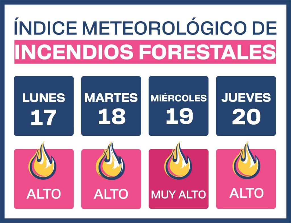 La advertencia responde a las condiciones meteorológicas previstas para la jornada, con temperaturas elevadas, baja humedad y presencia de vientos, lo que aumenta las posibilidades de incendio y propagación del fuego.