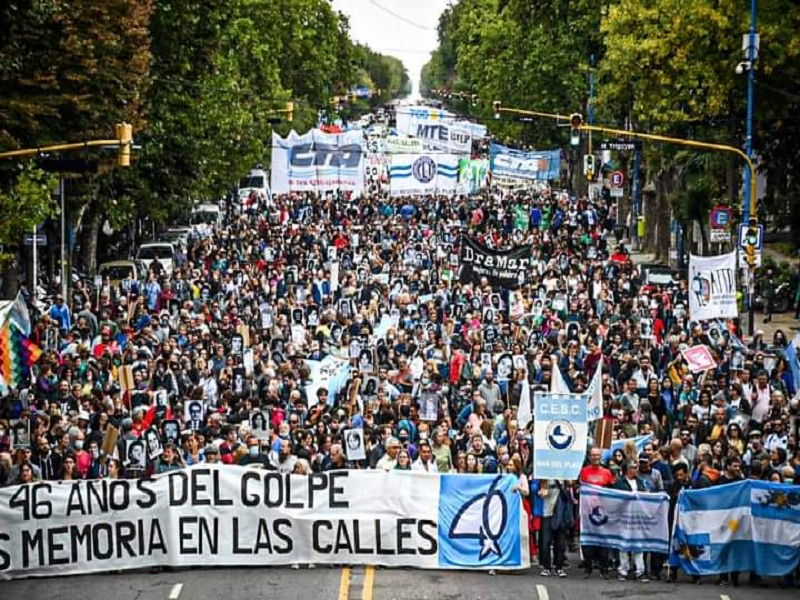 “Más de 40.000 personas se acercaron a las calles de Mar del Plata para conmemorar los 46 años del Golpe Genocida”, remarcaron las y los organizadores del evento.