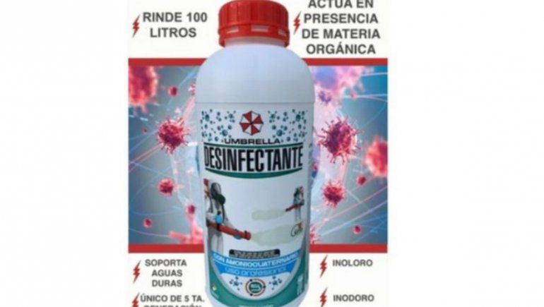 «Prohíbese el uso, la comercialización y la distribución en todo el territorio nacional del producto identificado en su rótulo como: UMBRELLA desinfectante con amonio cuaternario 5ta generación- Uso profesional- elimina el Covid-19-coronavirus, en todas las presentaciones y contenidos netos», marca el texto oficial.