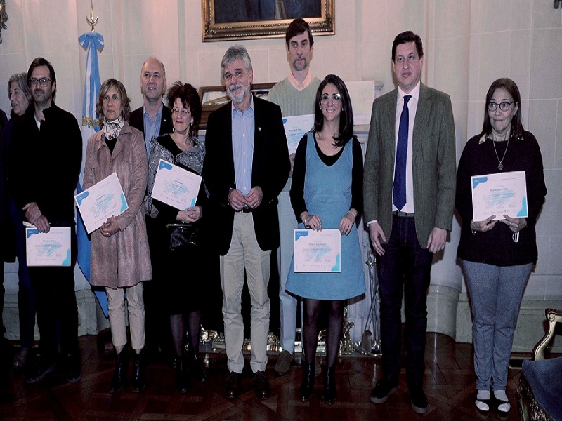 Investigadores que integran los proyectos seleccionados recibieron sus diplomas, en el Palacio San Martín de la Cancillería, de manos del ministro de Ciencia, Tecnología e Innovación, Daniel Filmus; el presidente de la Agencia I+D+i, Fernando Peirano, y el secretario de Malvinas, Antártida y Atlántico Sur, Guillermo Carmona.