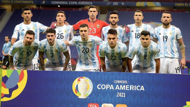 Emiliano Martínez; Nahuel Molina, Cristian Romero, Nicolás Otamendi y Marcos Acuña; Rodrigo De Paul, Guido Rodríguez y Giovani Lo Celso; Lionel Messi, Lautaro Martínez y Ángel Di María. DT: Lionel Scaloni.