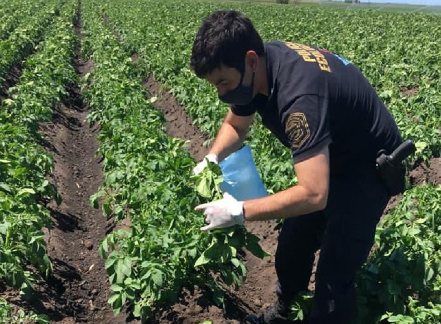 Luego los inspectores verificaron que en un galpón había bolsas de sustancias pulverulentas y tomaron distintas muestras, incluidos plantines de papa de lote contiguo al Jardón de infantes.