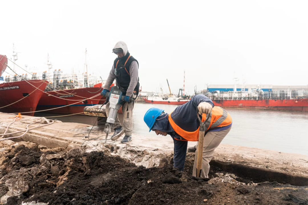 Con esta reparación se avanzará además en el rediseño y adecuación de las tapas de tomas de agua y los conductos correspondientes a desagües, que son parte de los servicios dispuestos en esos espacios de operatoria portuaria.