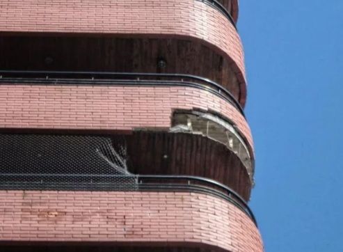 El desprendimiento del material se produjo a las 8.15 y los ladrillos que revestían el balcón del octavo piso cayeron sobre una bandeja protectora de obra.