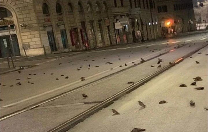 Imágenes de las calles cercanas a la principal estación de tren de Roma mostraron decenas y decenas de pájaros, en su mayoría estorninos, esparcidos sin vida por el suelo.