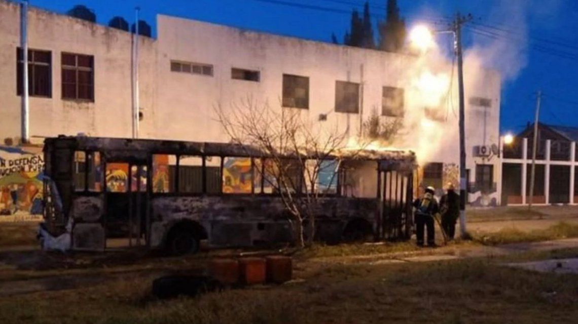 Las llamas también alcanzaron al colectivo, que resultó totalmente incinerado, y el chofer logró escapar por sus propios medios pero fue trasladado de inmediato a un centro de salud por las quemaduras que sufrió.