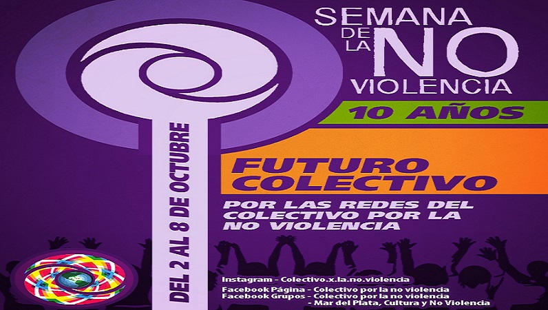 Coincidiendo con el Día Internacional de la No Violencia (natalicio de Mahatma Gandhi) comenzará este viernes la décima edición de la Semana de la No violencia en Mar del Plata. Todas las actividades se desarrollarán a través de las plataformas virtuales de facebook, instagram o zoom. El lema de este año es Futuro Colectivo.