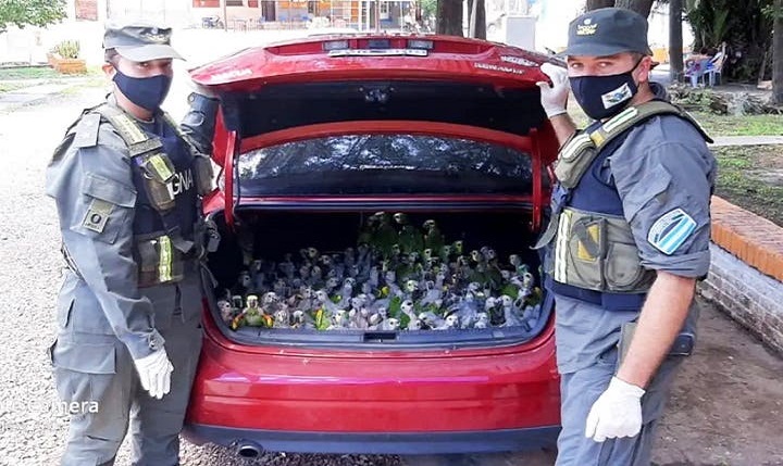 Luego de varios pedidos para que bajen el volumen finalmente lo hicieron y los uniformados empezaron a sentir ruidos extraños que salían de la parte de atrás del automóvil, por lo que les ordenaron salir del auto y abrir el baúl. Al hacerlo, los numerarios de Gendarmería se encontraron con que en el interior del mismo había una enorme cantidad de loros, que eran transportados de contrabando hacia la provincia de Santa Fe.