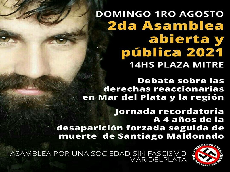 Fernando Lozada, referente de la asamblea, explicó a MdpYa cómo se realizará la jornada: “Realizaremos un mural en homenaje a Santiago Maldonado porque se cumple en esta fecha, cuatro años de impunidad, cuatro años en donde la Gendarmería, como una fuerza represiva, produjo la desaparición forzada seguida de muerte de este joven anarquista.”