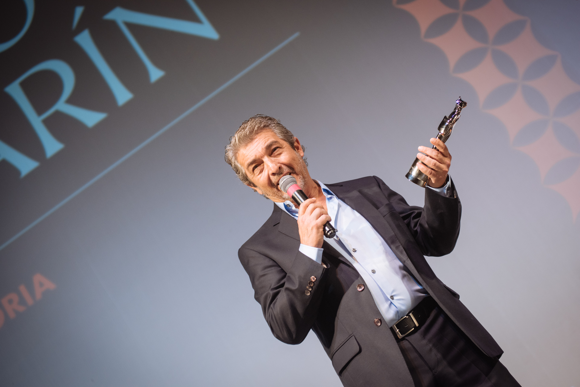 De saco azul, camisa clara y anteojos, subió al escenario con el aplauso de pie de los presentes. El galardón fue entregado por el director artístico y el presidente del Festival, Pablo Code y Fernando Juan Lima, respectivamente, tras repasar algunos de los grandes éxitos del actor, como «Nueve Reinas», «Cuento chino» o «El secreto de sus ojos».