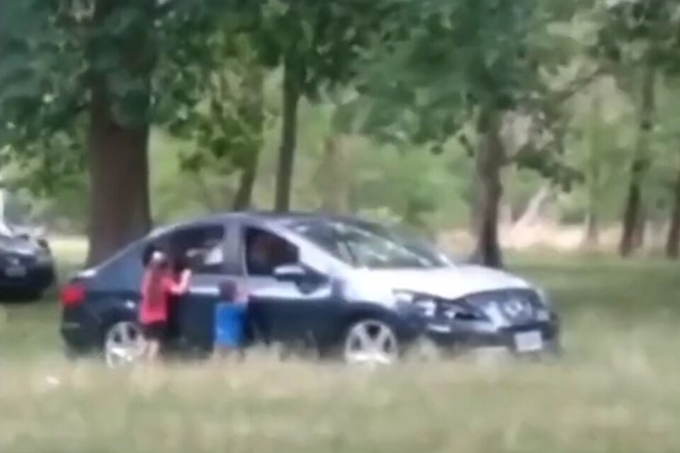 El video que captó un testigo que estaba de picnic muestra a los pequeños junto a un Peugeot negro estacionado bajo un árbol. Los dos hermanitos trataban de abrir las puertas.