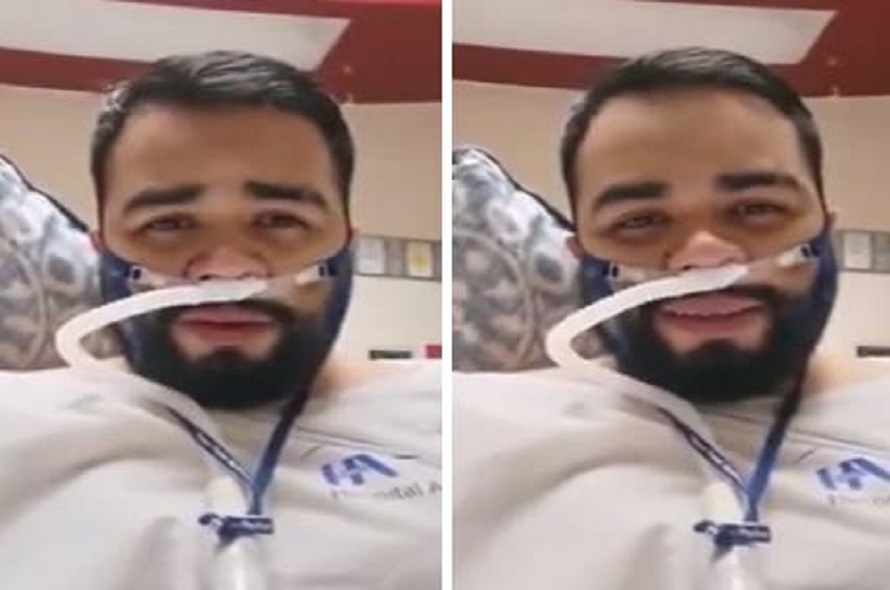Así fue como se contagió coronavirus, y debió ser hospitalizado en terapia intensiva. Justo antes de ser intubado, quiso compartir unas palabras con sus seres queridos. Desde su cama en el Hospital Ángeles Chihuahua, y con su bigotera de oxígeno, el joven pidió oraciones por su salud, y aseguró que iba a recuperarse pronto.