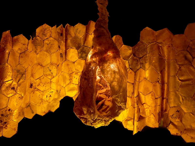 En el foyer, se exhibe «Simbiosis» de Lucrecia Maya. Una instalación con la cual la artista visual busca explorar y volcar en su obra el mundo sagrado de las abejas, metaforizando, mediante una instalación, su hábitat natural, el panal, con un santuario, un templo, un espacio sagrado- adorado donde se origina y gesta la vida. Una obra donde el espectador es invitado a ingresar y participar de forma activa, empequeñeciendo para detenerse a contemplar la belleza y la magia de la Naturaleza.