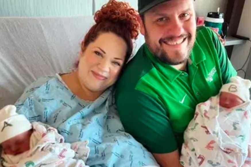 Los médicos proyectaron la fecha del parto para el día de Navidad, pero las mellizas nacieron antes, justo a tiempo para pasar las festividades en casa con el resto de sus hermanos.