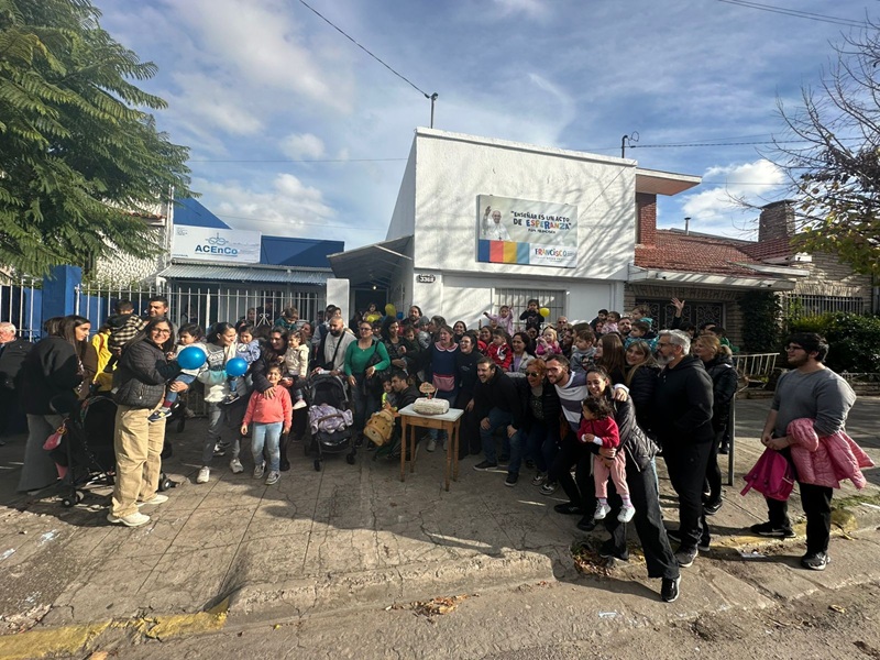 Y agregó: “Es una alegría celebrarlo en comunidad. En un lugar distinto, pero con la misma esencia. La de estar, la de la solidaridad, la de accionar, la de arremangarse, la de ir para adelante, la de construir comunidad organizada con los peques como privilegiados, la de homenajear al papa Francisco desde la realidad efectiva.”
