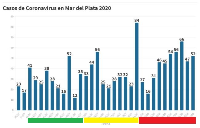 Ya en la franja roja cuando totalizamos nos da un número alarmante: en 10 días tuvimos 440 contagiados de coronavirus.