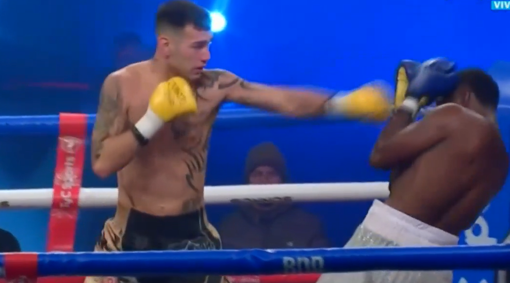 En su debut internacional, Mina (8-2) poco pudo hacer ante el noqueador argentino y se fue a la lona tras recibir la combinación de un uppercut de derecha y un gancho de izquierda a la zona hepática.