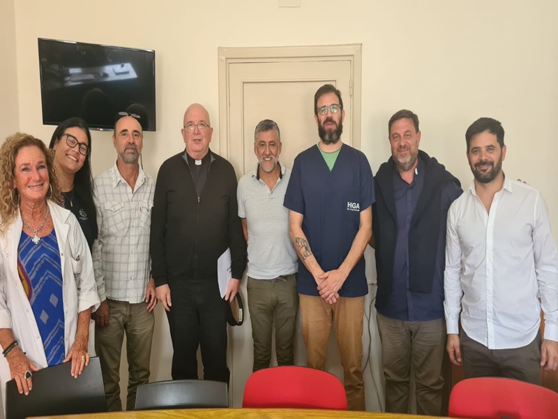 El obispo local, monseñor Ernesto Giobando, junto al vicario Hernán David, visitaron las instalaciones del hospital regional “Oscar Alende” e intercambiaron visiones junto a la dirección, sobre la necesidad de potenciar la salud pública y el hospital