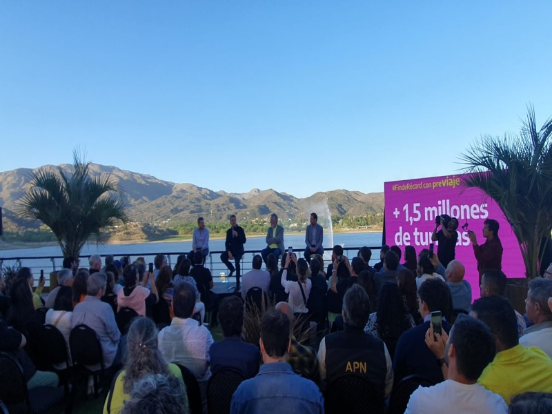 Durante el acto el ministro de Turismo confirmó que el fin de semana extra largo registró un movimiento récord con 1,5 millones de turistas que se movilizaron por todo el país, un 43% más que en 2019 y un 15% más que en el 2022, mientras que medio millón de personas lo hicieron utilizando Pre Viaje con un impacto económico superior a los $111 mil millones.