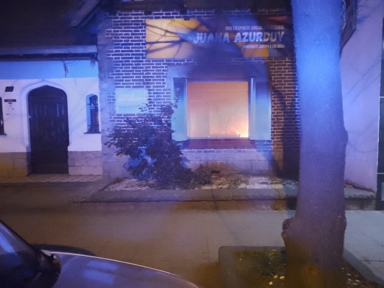 En la madrugada de ayer nuestro Centro Cultural Juana Azurduy, que oficia también como sede partidaria, fue objeto de un acto inusitada violencia realizado por manos anónimas, quienes provocaron un incendio que generó pérdidas materiales irrecuperables, como así también la paralización de actividades culturales y formativas donde más de 200 vecinos y vecinas concurrían diariamente a formarse y participar de la propuesta que ofrece nuestro espacio participativo.