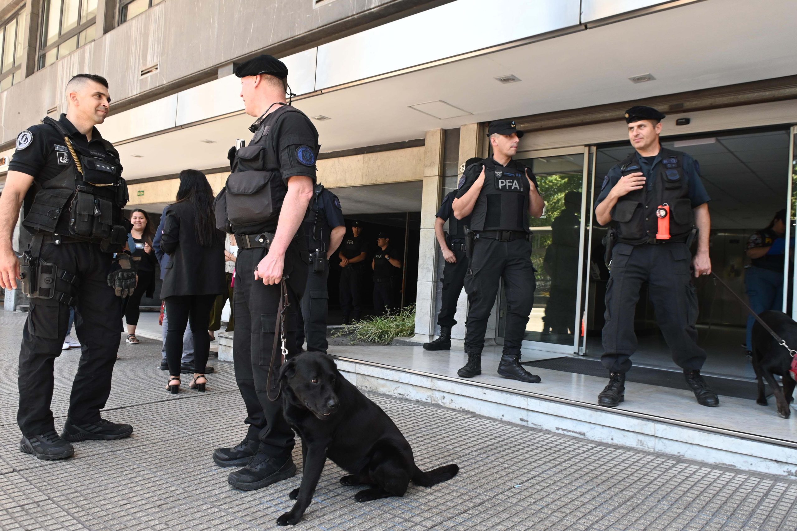 El personal de la Policía Federal Argentina (PFA) confirmó que la amenaza fue en los pisos 5, 10 y 12 del edificio de Paseo Colón 275, mientras los efectivos de la Policía de la Ciudad brindaban colaboración en el sector externo del edificio y notificaron la situación al Escuadrón Antibombas del distrito.