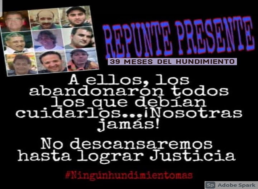 Hoy se cumplen 39 meses del hundimiento del Repunte, la tragedia pesquera que se cobró más cantidad de vidas en nuestro país. Como cada mes las familias seguimos reclamando que la Justicia de respuestas sobre las verdaderas causas del hundimiento es inaceptable que pasaron 39 meses del hundimiento y la causa penal sigue en la etapa de instrucción.
