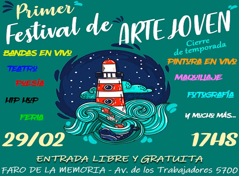 Este sábado 29 de febrero a partir de las 17hs se realizará el Primer Festival de Arte Joven, un evento pensando por y para jóvenes, con entrada libre y gratuita. Será en el Espacio para la Memoria y Promoción de los Derechos Humanos ex- ESIM (Av. De los Trabajadores 5700).