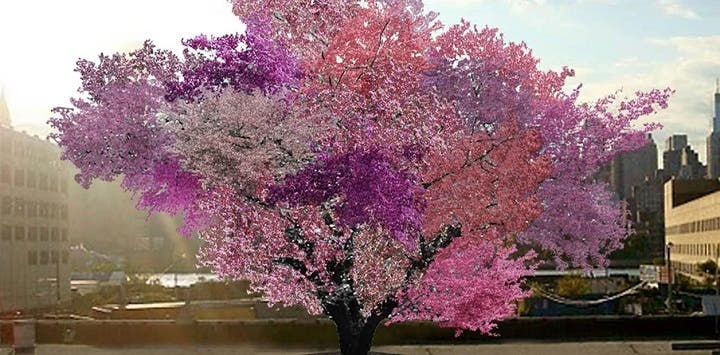 El multifacético árbol concibe diferentes combinaciones, ya que el proyecto de Van Aken utiliza más de 250 variedades de fruta.