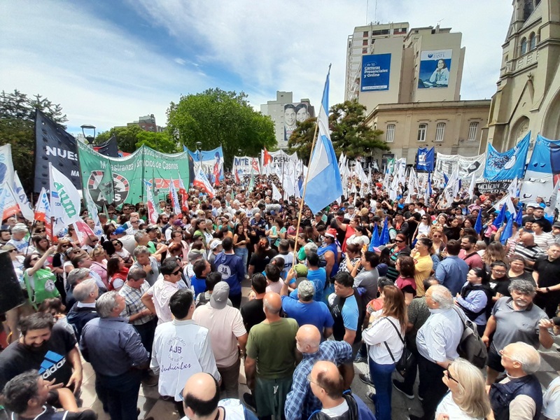 “En el marco de la convocatoria de las 3 centrales de Mar del Plata, como Suteba y Ctera estamos formando parte de la misma, nos concentramos con muchas organizaciones y sindicatos frente a la catedral. La Ctera sacó un comunicado en donde ha sido muy clara en cuanto a rechazar las formas de los decretos de necesidad y urgencia porque son anticonstitucionales de toda legalidad, los decretos lesionan, derogan y limitan el derecho de los trabajadores a la sindicalización, es decir, viola la libertad sindical que establece la organización internacional del trabajo a la cual Argentina a subscrito como miembro adherente”, relató.