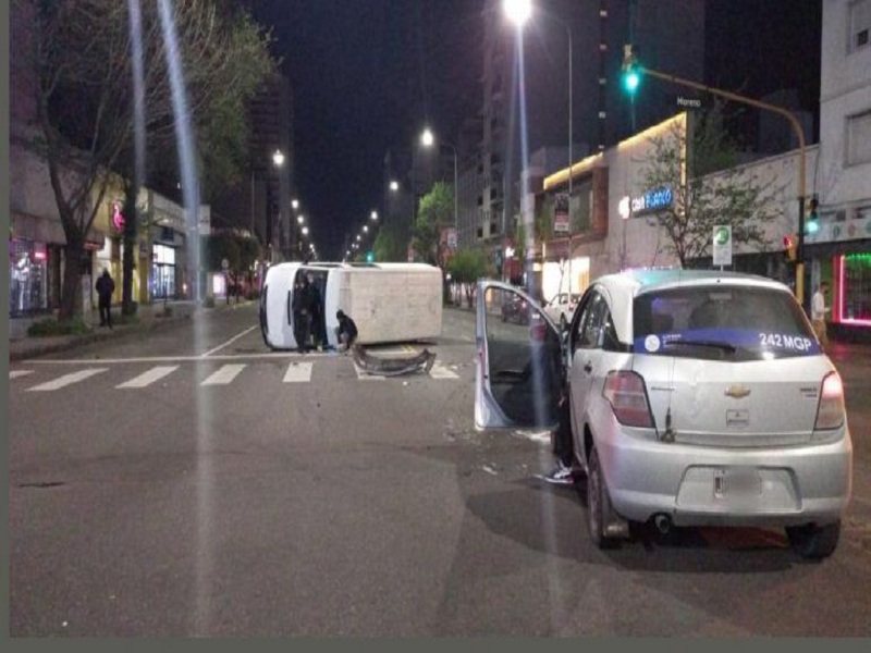 El hecho ocurrió poco antes de las 12 en la intersección de la avenida Independencia y Moreno. Las causas del choque aún son materia de investigación. El conductor de una camioneta Mercedes Benz Sprlinter, y el de un Chevrolet Agile colisionaron y el vehículo de mayor porte quedó volcado en el medio de la avenida.
