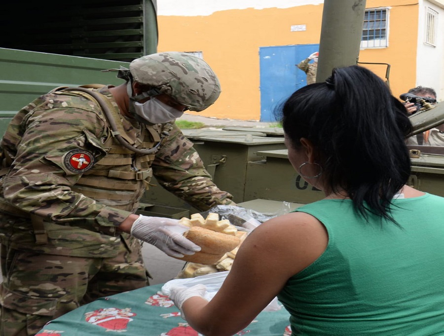 En coordinación con el Municipio, a cargo de Fernando Espinoza, hombres y mujeres del Ejército Argentino comenzaron a llevar adelante la preparación, instalación, distribución y apoyo logístico de siete puntos sensibles para la entrega de veinticuatro mil raciones de comida.