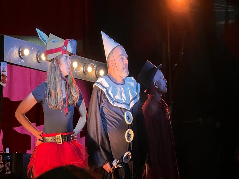 Una obra de teatro inspirada en el circo, con texto, puesta en escena y dirección general de Manuel Santos Iñurrieta, en el que actúan Mario Carneglia, Guillermina Miravé y Facundo Mosquera, con música original de Claudio Solino. Le cuento.