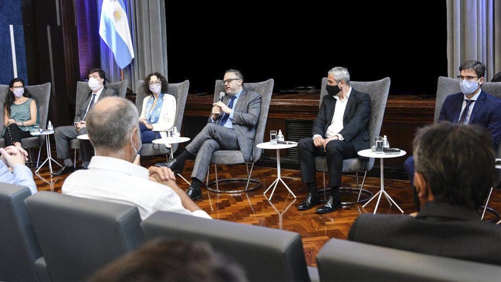 Kulfas, estuvo acompañado por su par de Desarrollo Territorial y Hábitat, Jorge Ferraresi; la vicejefa de Gabinete, Cecilia Todesca, el vicepresidente del Banco Central de la República Argentina, Sergio Woyecheszen, y la titular de la AFIP, Mercedes Marco Del Pont.