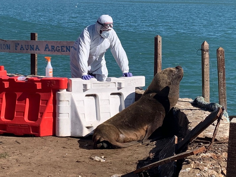 “El 8 de agosto se notificó la mortandad de 21 lobos marinos de un pelo (Otaria flavescens) en la costa de Tierra del Fuego, cerca de Río Grande. Dos días después, el 10 de agosto, ante el resultado positivo de las muestras tomadas en dichos animales, se confirmó el primer caso de IAAP H5 en mamíferos marinos de nuestro país. El 11 de agosto se notifica la presencia de 2 lobos marinos muertos de la misma especie en la Reserva faunística Punta Bermeja, en Viedma, Río Negro, que también arrojan resultados positivos a la enfermedad. La distancia entre ambos casos es de 1.500 km lineales. Luego se confirman otros casos positivos de la misma especie en las provincias de Santa Cruz, Buenos Aires y Chubut”, relata el informe.