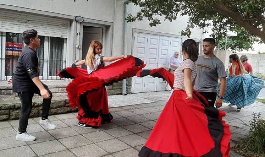 Ayer a la tarde tres parejas de amigxs y hermanxs decidieron darle una hermosa sorpresa a la abuela de dos de ellxs: ir a bailar chacareras, gato, escondido y zamba a la puerta de su casa!!.