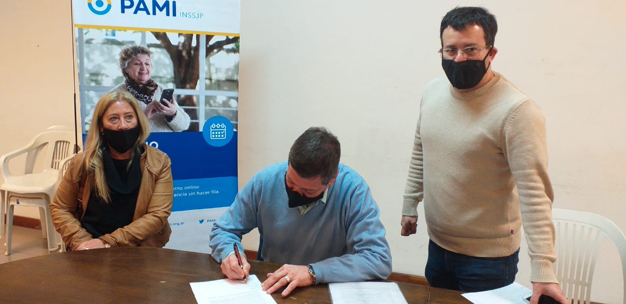 Participaron tambien de la firma del convenio Cristian Arroyo coordinador de prestaciones sociales del Pami, Adriana Donzelli Secretaria Adjunta de la CGT Mar del Plata, Patricio Becherini de UTERA y Celeste Lazo de UPCN Nacion.
