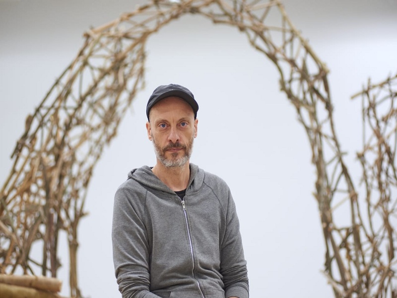 Con respecto a los materiales y su obra le interesa utilizar elementos cotidianos como: ramas, madera, fósforos, papel. En palabras del artista: “Sin madera todo lo realizado por la humanidad tendría otra forma. Esta pieza explora el vínculo entre producción humana y naturaleza mediante una instalación escultórica realizada con ramas de la poda comunitaria. La poda anual produce “desechos” que aquí se resignifican material y simbólicamente. Cada rama es un patrón constructivo, fragmento amputado a un organismo y unidad cronológica. Acumuladas y estructuradas en el espacio resultan un racimo de tiempo tangible”.