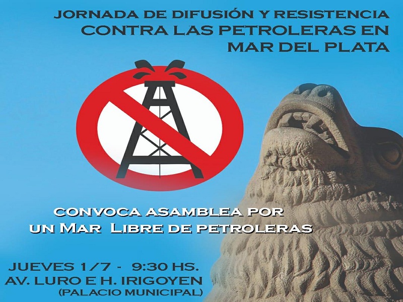 Este jueves 1 de julio a las 9:30 hs frente a la Municipalidad, se realizará una convocatoria para frenar los avances para la extracción de hidrocarburos. “Se está poniendo en riesgo la vida y nuestro territorio,” detallaron desde la Asamblea por un mar libre de petroleras.