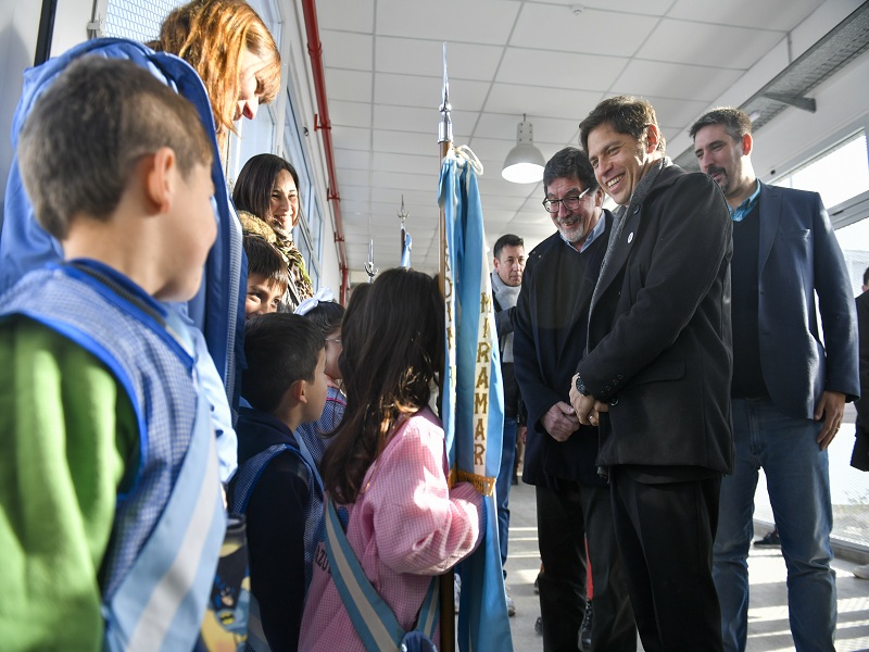 En el marco del programa Escuelas a la Obra, el gobernador de la provincia de Buenos Aires, Axel Kicillof, encabezó esta mañana el acto de inauguración del edificio de dos instituciones que completan el polo educativo de Barrio Aeroparque, en Miramar. Fue junto al director general de Cultura y Educación, Alberto Sileoni; y el intendente de General Alvarado, Sebastián Ianantuony.