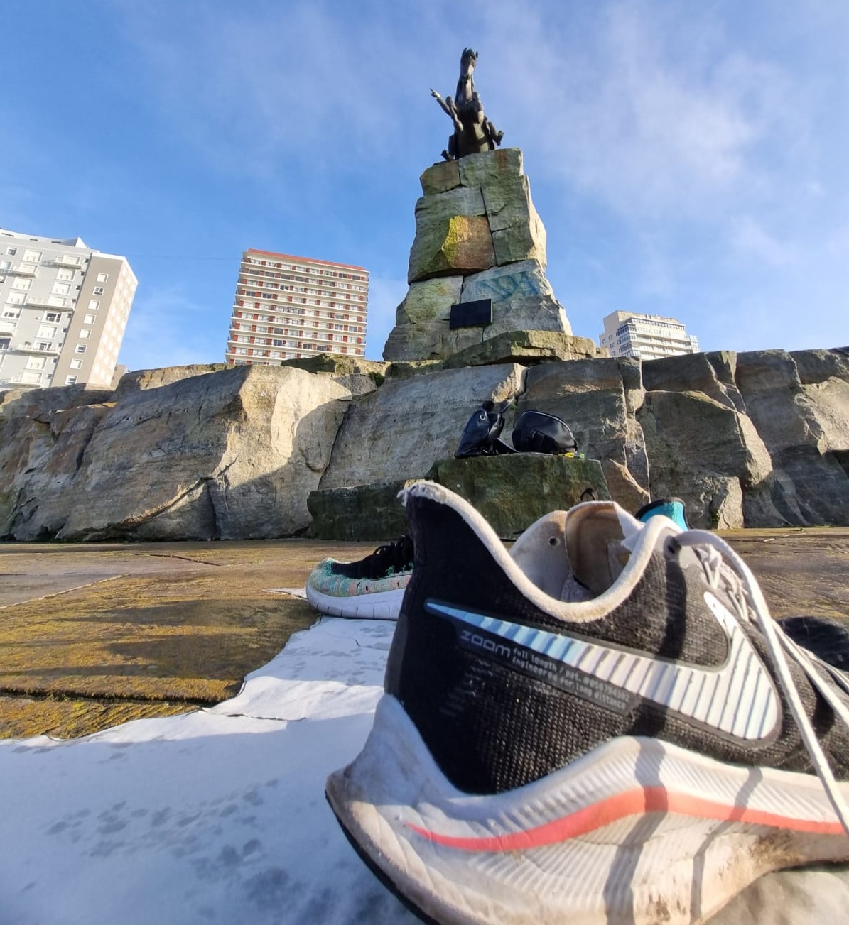 Bajo la imagen del Padre de la Patria, en el corazón del parque que lleva su nombre en nuestra ciudad, más de 300 zapatillas fueron parte de una intervención artística que resume la huella Sanmartiniana en nuestro territorio y que dio espíritu y razón a la campaña solidaria #Huellasqueunen.