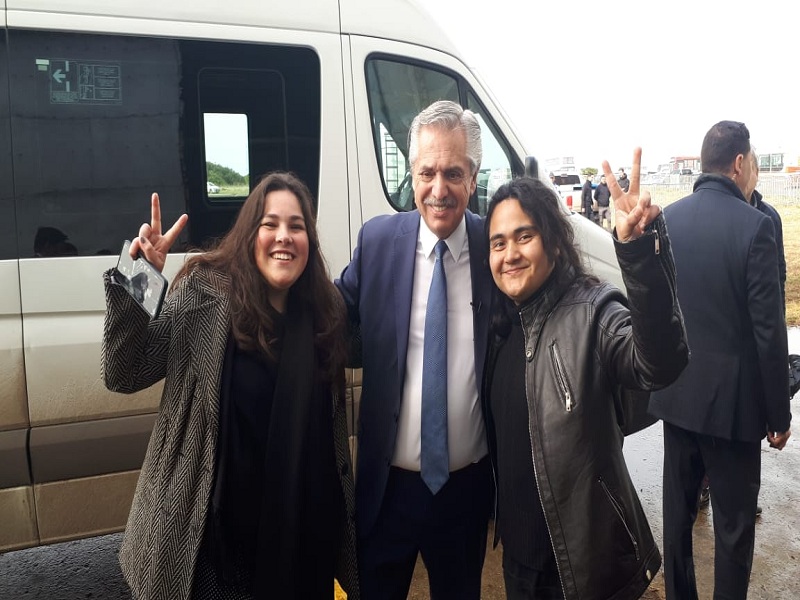 Al bajar de la camioneta que lo llevó desde el Aeropuerto Astror Piazzolla al complejo, fue recibido por Walter Torbay de Izquierda Kirchnerista y ACENAS, y Fiamma Maglione en representación de los trabajadores de Feria del Buen Vivir y el Movimiento Popular La Dignidad. «Hablamos algunos minutos para plantearle la lucha contra la inflación y los recursos necesarios para seguir adelante con la Feria y los mercados solidarios y sindicales», indicó Fiamma y añadió: «Fueron unos pocos minutos pero se comprometió a dar una mano en lo necesario».