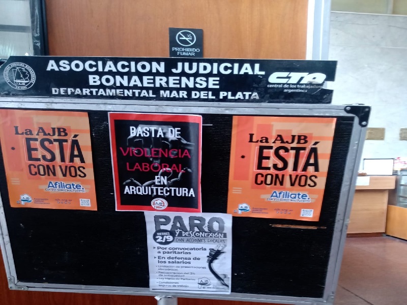 Concluyendo el mes de agosto, y en virtud de los sucesivos reclamos realizados por la AJB sobre la necesidad de actualización de los salarios de las y los judiciales, en concordancia con los mandatos mayoritarios de las asambleas, y por decisión unánime de la conducción provincial y las y los 20 secretarios generales, se convoca a un paro de actividades, con desconexión y acciones locales en las departamentales de la provincia para el próximo viernes 2 de septiembre.