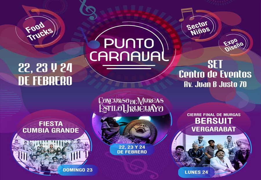 Se viene, , por primera vez, el verdadero carnaval rioplatense de la mano del evento más grande en toda la costa atlántica de cara al fin de semana XL de febrero: con la Declaración de Interés Cultural del Ministerio de Cultura de Uruguay bajo el brazo, del 22 al 24 de febrero se llevará a cabo en Mar del Plata “Punto Carnaval”, el último mega evento de la temporada pensado para todas las edades y que incluirá como gran novedad el 1er Concurso de Murgas Estilo Uruguayo en Argentina.