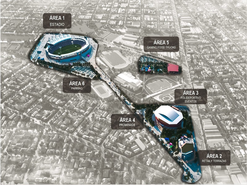 El proyecto de Revee incluye la recuperación completa del Estadio Mundialista, la modernización del Polideportivo y una renovación general de todo el entorno. Además, contempla zonas gastronómicas, de retail y gaming.