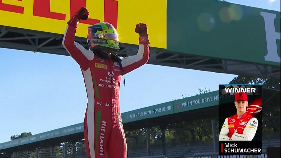 El hijo del héptuple campeón precedió en la meta al italiano Luca Ghiotto y al danés Christian Lundgaard. En la clasificación provisional del campeonato, Mick ocupa la tercera plaza con 131 puntos, detrás de Robert Shwartzman y del británico Callum Ilot, que cosechan 134 unidades cada uno.