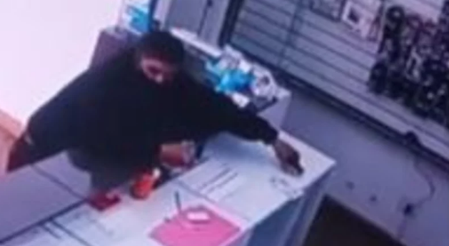 En las imágenes que se pueden ver en el video, se puede observar a dos hombres con barbijo que se acercan al mostrador y comienzan una charla con la empleada del lugar. Cuando ella se distrae, uno de los hombres agarra el celular y unos minutos después del hecho se retira.