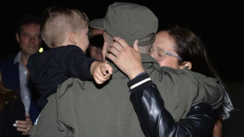 El gendarme aterrizó en el Aeropuerto Internacional de Ezeiza a las 4:45 de la madrugada, vestido con su uniforme de fajina. Allí fue recibido por su esposa, María Alexandra Gómez, su hijo Víctor, de tres años, y su madre, Griselda Heredia.